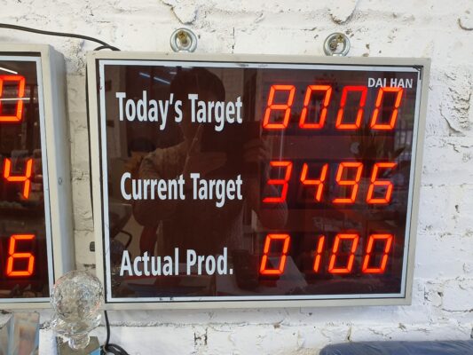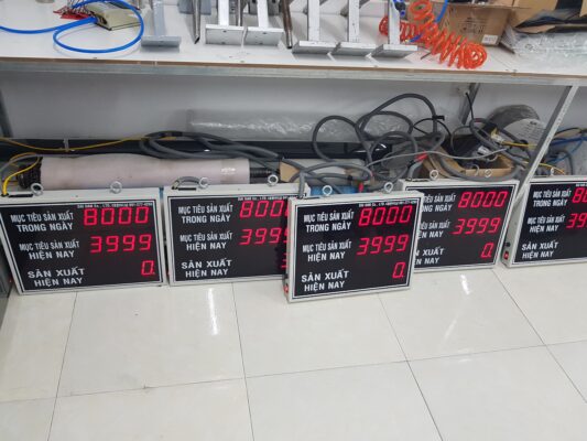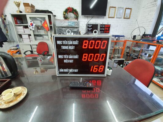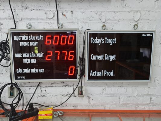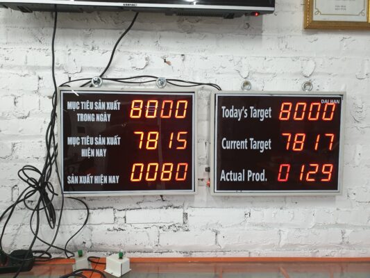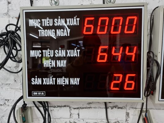 Bảng điện tử năng suất có chức năng hiển thị số lượng và theo dõi tiến độ năng suất sản xuất.